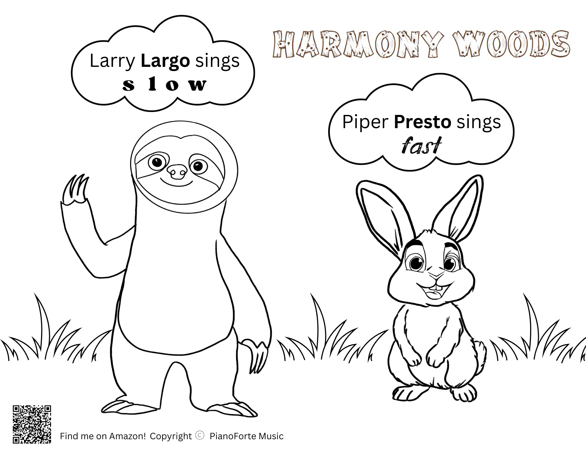 Harmony Woods is my children's book series teaching early musical concepts. Children will fall in love with characters Penny Piano and Freddy Forte as they meet new friends and learn musical concepts like high and low, loud and soft, and fast and slow!